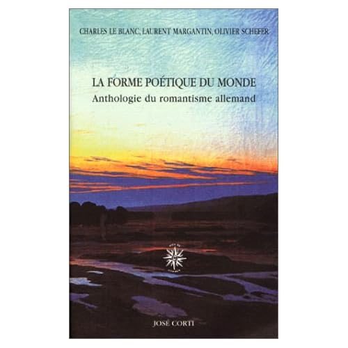 Cette anthologie de textes du romantisme allemande, savamment partagés entre les trois « vagues » successives du mouvement, bénéficie d??un appareil critique limpide et lucide. Le parti pris est sans ambages: le romantisme est envisagé ici du point de vu philosophique - donc comme pensée. S??en suit une petite mise en garde aux lecteurs: le recueil ne contient ni poèmes, ni Märchen, ni lettres d??amour enflammées. Il s??agit plutôt de mettre en exergue la nature autoréfléxive de l??état d??esprit "romantisé". De même, très peu de références à la musique, à l??art pictural (hormis le paysage), ou à la situation socio-économique qui ferait naître une telle pensée du sujet et de la nature. Pour les récits romantiques, il faudrait s??adresser, par exemple, aux deux tomes de la Pléiade.